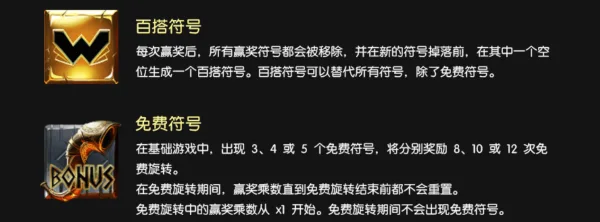 BONUS只要出現三個,即可啟動免費遊戲,依數量提供8、10、12次旋轉。免費遊戲的核心亮點,是倍數會從第一輪開始累積且永不歸零,這讓整段遊戲呈現明顯的階段性爆擊曲線,玩家也可選擇購買免費遊戲,從基本到SUPER MODE,多種模式能讓玩家依風險偏好調整策略,而巨大符號的加入更是提升最大爆擊的主要條件。