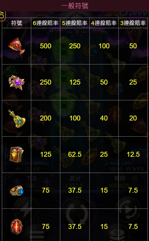 實際進入遊戲後,大法師的操作流程相當直覺,玩家可依自身資金策略設定下注金額,啟動轉軸後,元素與符文符號依序落定,盤面結果清楚呈現,遊戲採用標準連線判定邏輯,只要相同符號在有效路徑上連續出現,即可形成中獎結果,判斷過程不複雜。