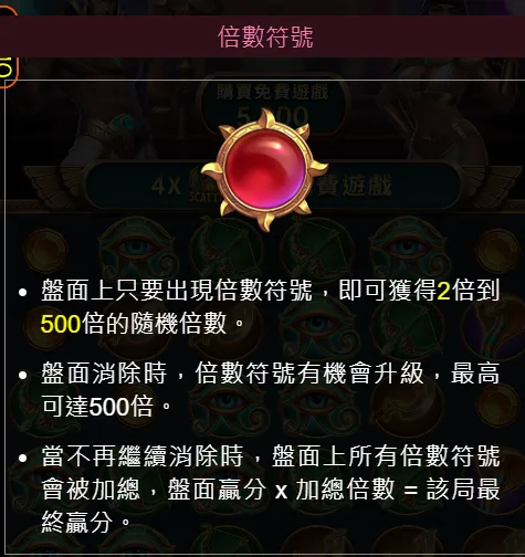 理論返還率並不等於短期結果,但戰神賽特的實際體感,確實符合高RTP、集中式回饋的設計方向,多數時間內,遊戲給出的回報相對保守,連線與消除更多是維持節奏,而非立即帶來明顯獲利。真正的轉折點,往往出現在免費遊戲成功延長、倍數開始累積之後,一旦進入這個區段,單次回報的放大感會非常明顯。