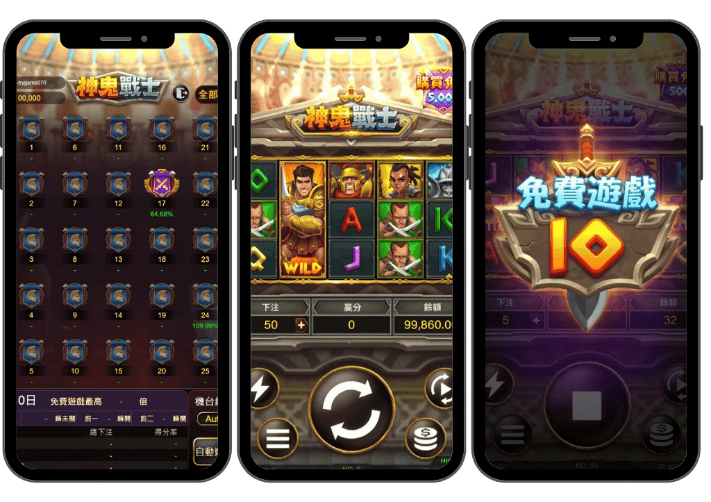 實際進入神鬼戰士後,玩家首先會進行下注設定,依資金狀況調整單次旋轉金額。啟動轉軸後,盤面快速結算,連線判定清楚明確,讓整體節奏保持流暢,不會被多餘動畫中斷。