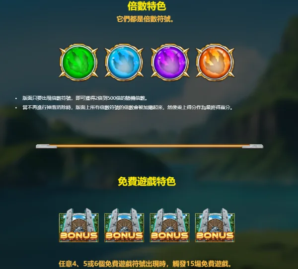 Bonus的呈現則偏向探索式演出,背景會稍微變暗,叢林霧氣加深,讓焦點集中在關鍵符號上,音效張力提升,但依舊維持主題一致性,不會出現與場景不符的誇張元素。